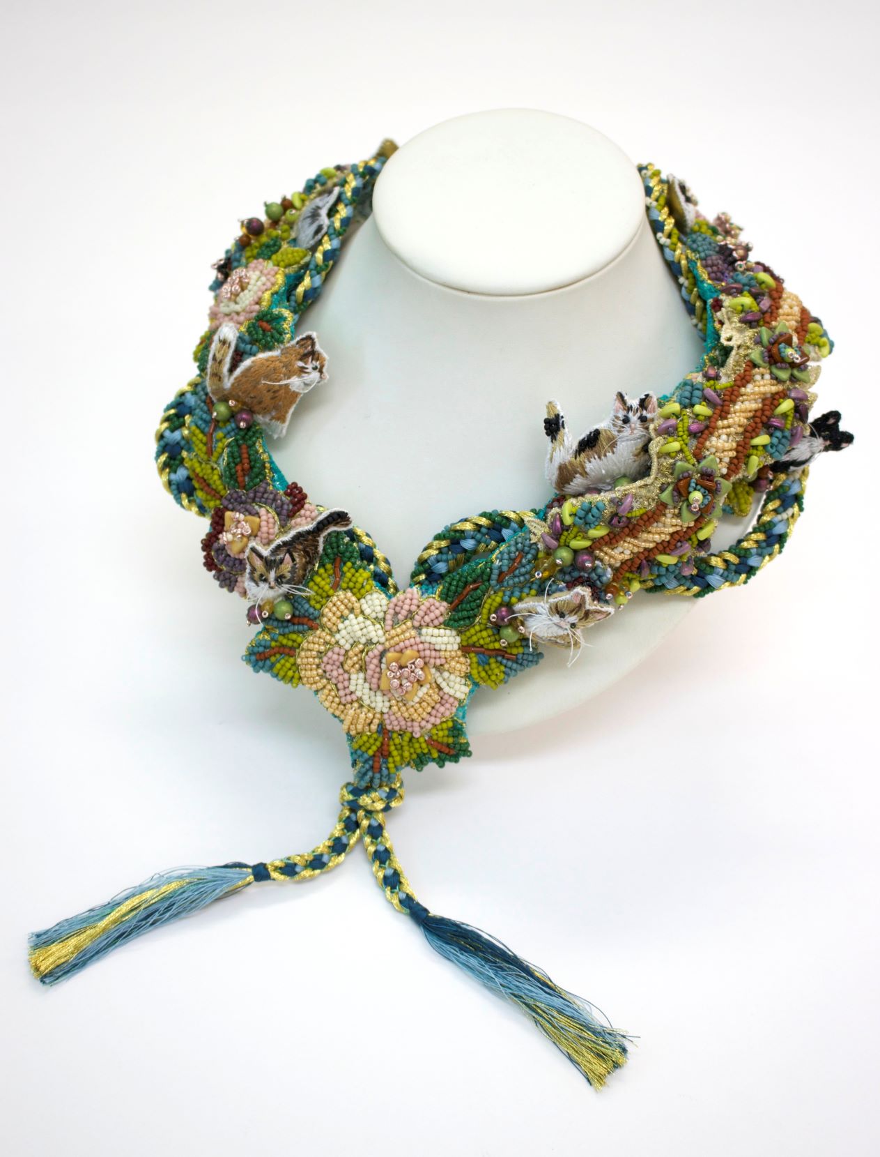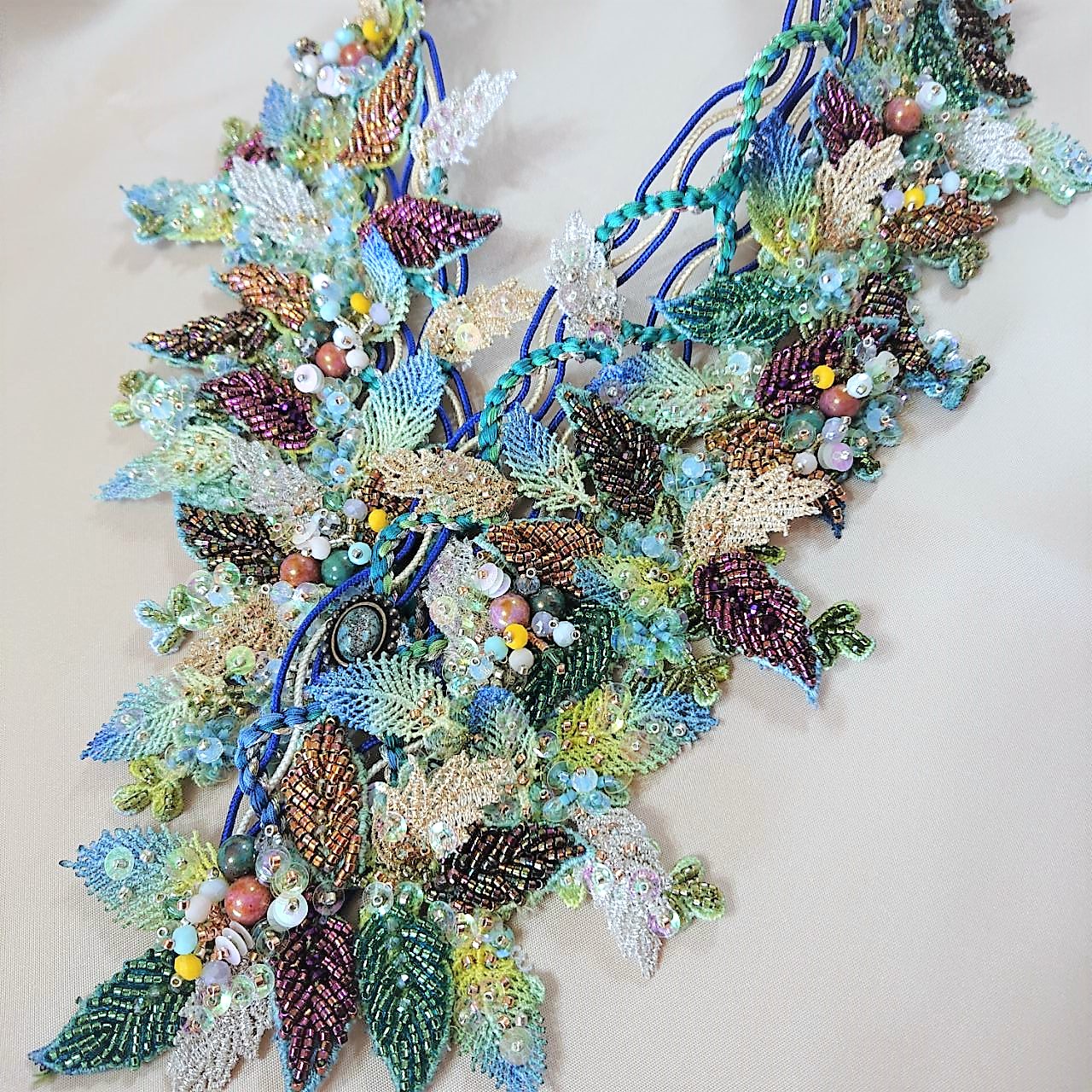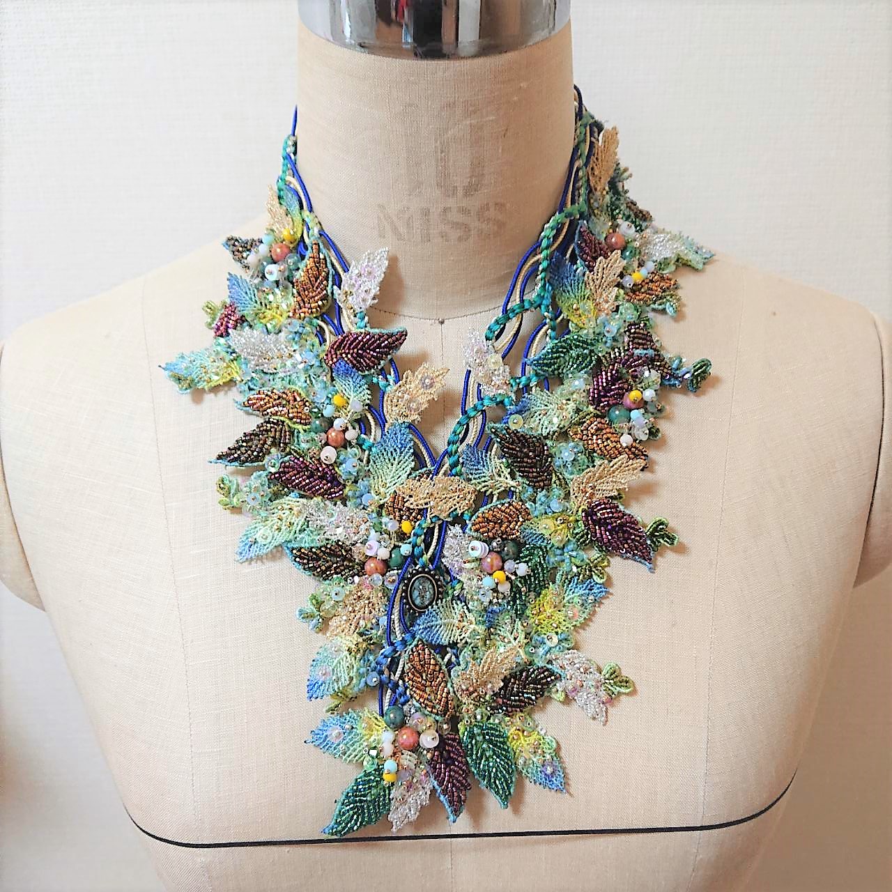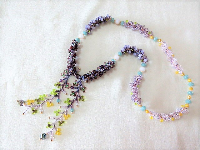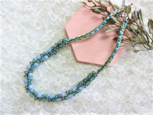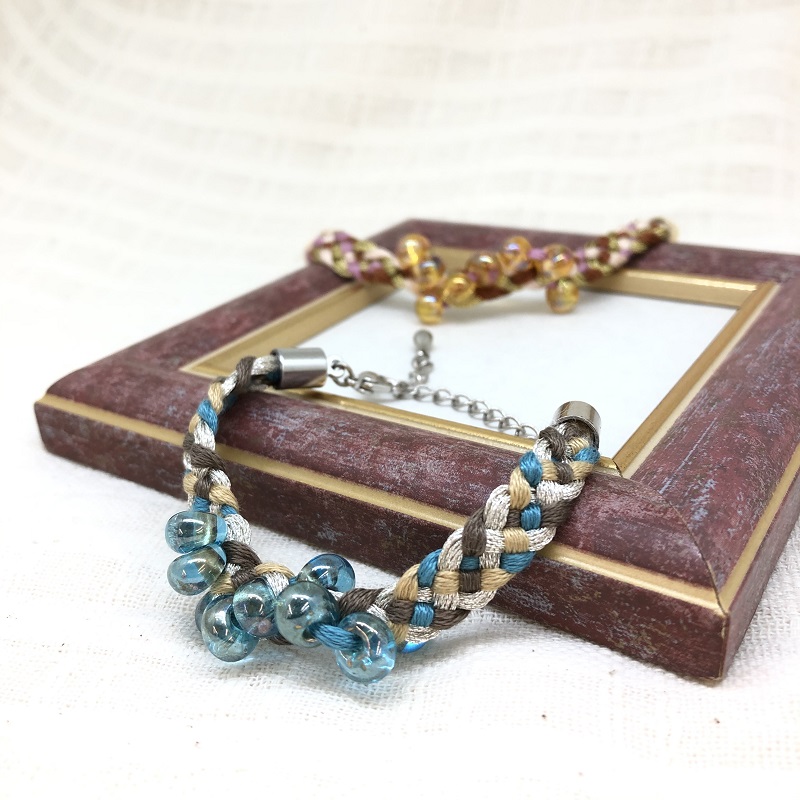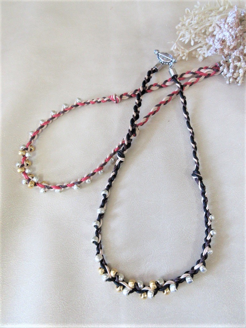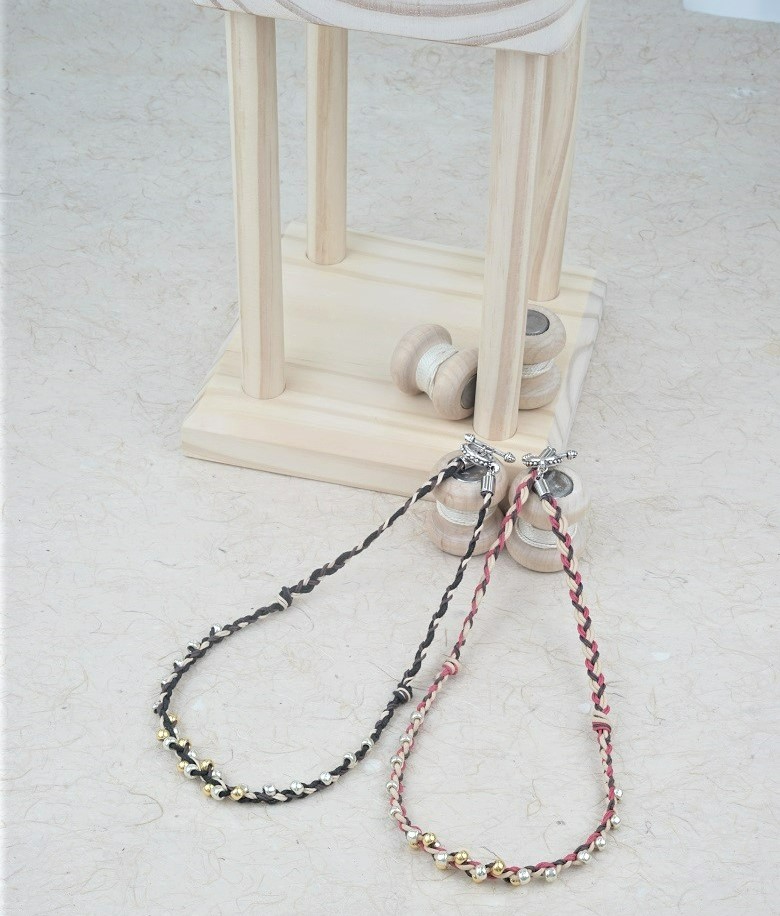 「ビーズと組紐台を使った四つ組ネックレス」