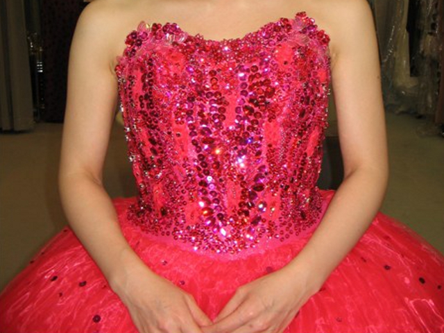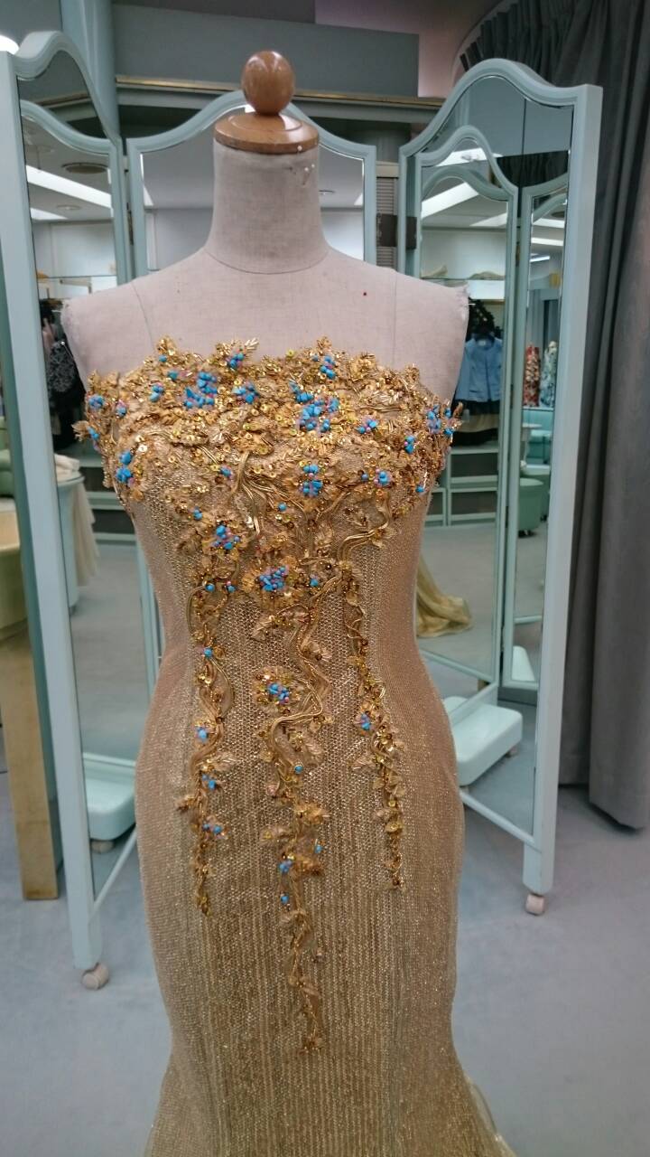 作品は桂由美のオートクチュールフルール(造花)を使い、